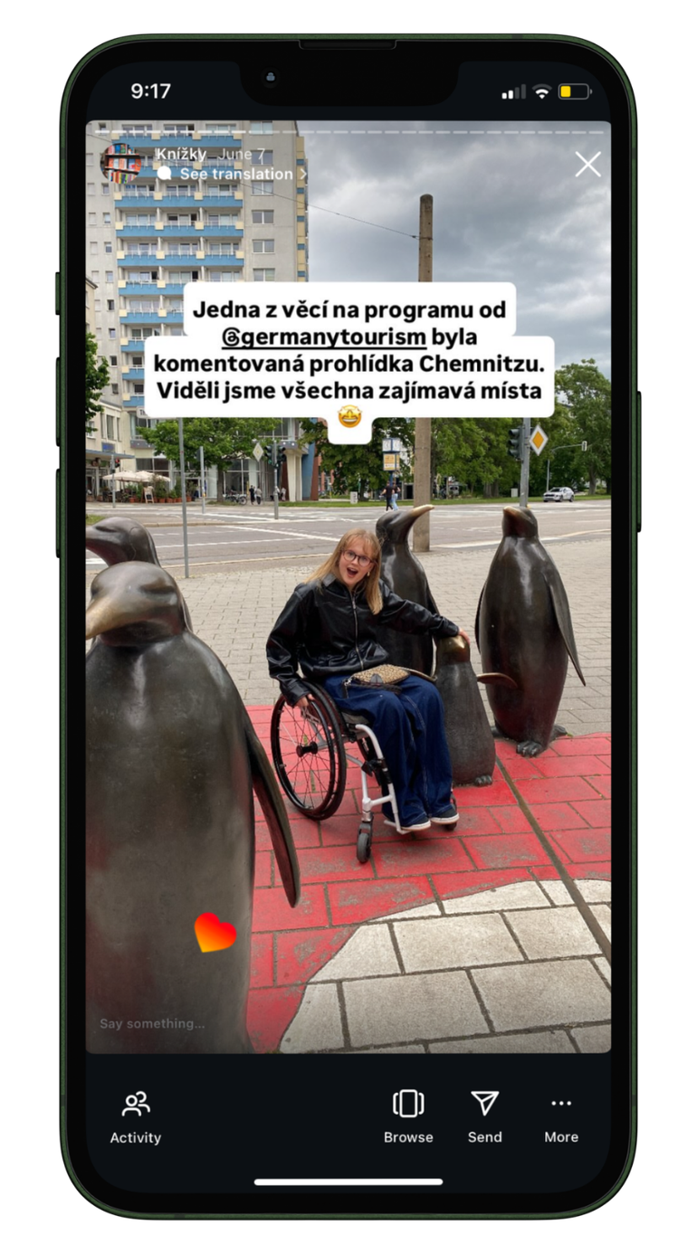 We took Naomi Adachi and Max Habanec on a romantic getaway to Hamburg. Singer and football enthusiast Jakub Děkan captured the atmosphere of the UEFA Euro in Leipzig. Bookstagrammer Thea Krejčová got a chance to discover Chemnitz, the 2025 Capital of Culture.
