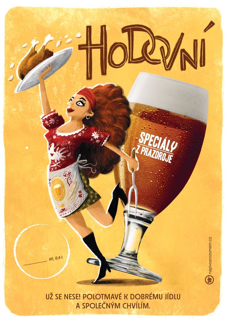 Vizuální prvky jsme navrhli tak, aby fungovaly v reálné hospodě, často zahlcené plakáty, stojánky a dalšími reklamními nosiči. Barvy i výrazné ilustrace pomáhají rychle rozpoznat a odlišit pivní speciál od běžné nabídky.