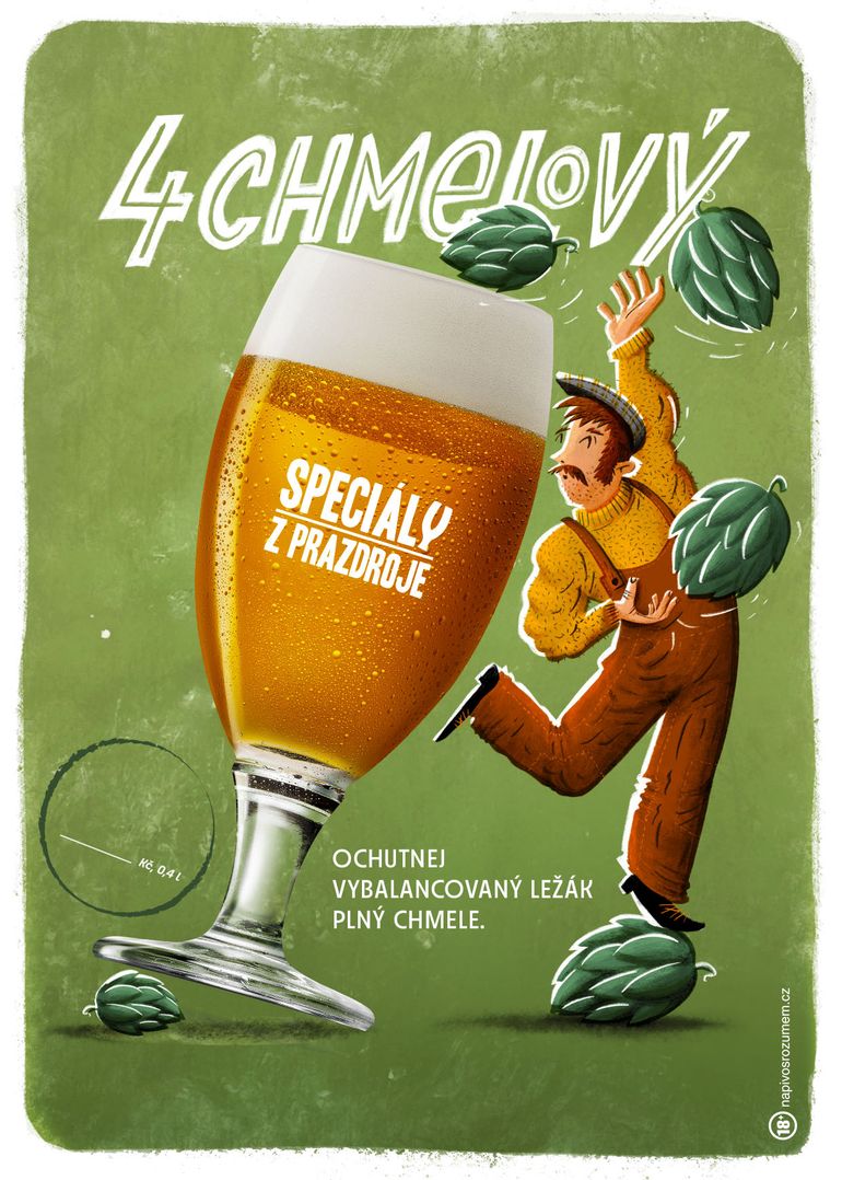 Nakloněná sklenice. V pivním světě nečekaný prvek, který jsme zvolili záměrně. Stejně jako pivní speciály vystupují mezi klasickými ležáky, i naše vizuály vybočují z toho, na co jsme u piva zvyklí. Přirozeně tak poutají pozornost a probouzejí zvědavost.